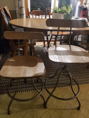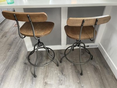 2pk Industrial Wood & Steel Adjustable Counter Stools - Aged Oak/Black - Hearth & Hand™ with Magnolia