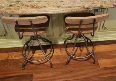 I have been wanting swivel stools with this industrial style for awhile. I like the simplicity in the design coupled with the ability to swivel the chair, as well as the adjustable height. The installation does not take long, but you need to make sure you leave all leg screws a little loosened until you are able to fully tighten the footstool ring screws. I like how quickly you can wipe down the wood and metal surfaces, making clean-up a breeze. Once assembled, I immediately noticed the short height of the chairs. I have the chairs fully extended and they slide underneath my island countertop. For the adults, this height is still acceptable, but the kids need more height. Being fully extended, the chairs experience wiggle between the two main chair components and I question longer term stability. Lowered all the way, the contoured seat height is within a half inch of the coordinating non-swivel dining chair. As far as comfort, the chairs don't look overly comfortable and that is because they aren't. For seating areas that get neither heavy nor prolonged use, I think they are acceptable if the height will work out, but if you have a heavy and/or prolonged use seating area, I would look elsewhere.
