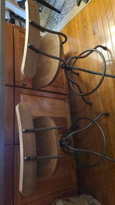 A waste of money....wood seats and backs are such poor quality will need to be sanded before I could even sit on them due to open grain and very rough surfaces. The base of the chairs are so tippy one can rock back and forth. Sad because I love the look, been searching for unique counter height chairs for over a year. Would NOT recommend!