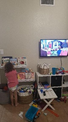 [This review was collected as part of a promotion.] I mounted this low in the wall in my daughter’s room so that she can help clean up and put her books away and get books whenever she wants. It looks cute on the wall while trying to keep a small child’s room clean.