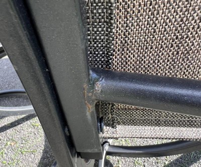 A: Dear Pinkie, sorry for the inconvenience. The small hole seems unlikely to be caused the frame as the stell frame is ground smooth and then powder-coated for rust resistance. There should be something else causing this. Please contact Target guest service for after-sales service. Thank you for your interest in our product.