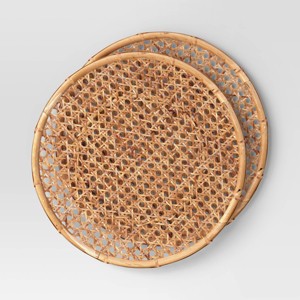 These 2-Pack Rattan Cane Chargers from Threshold™ blend rustic aesthetics with functional elegance. These charger plates are beautifully woven with rattan cane material to add timeless charm to any table setting. Whether you are preparing the table for a family gathering or a festive feast, these charger plates are sure to elevate the look and feel of your dining setup.