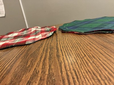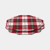 Bring a touch of festive charm to your dining table with this 2-Pack Reversible Plaid with Top Stitch Charger Set from Threshold™. This set includes two reversible chargers, each with one face featuring a red plaid pattern and the reverse showcasing a green plaid pattern. Adorned with stitch detailing on the scalloped edges, these chargers elevate your dining settings, and the cotton-linen blend fabric feels soft to the touch while helping protect your table surface.