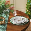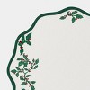 Dress your dining table for holiday gatherings with these 2-Pack Scallop with Embroidery Chargers from Threshold™. Made of cotton-linen blend fabric for a soft feel, these scalloped chargers feature embroidered holly graphics to bring a touch of festive cheer to your space. Plus, these 15-inch chargers are machine washable for easy cleaning.