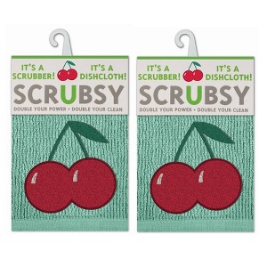 2pk Scrubsy Dish Cloths Cherries Print - MU Kitchen: Cotton Terry, Non-Scratch, Absorbent