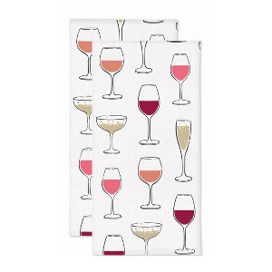 2pk Wine Glass Print Kitchen Towel - MU Kitchen: Durable Cotton, Absorbent, Machine Washable
