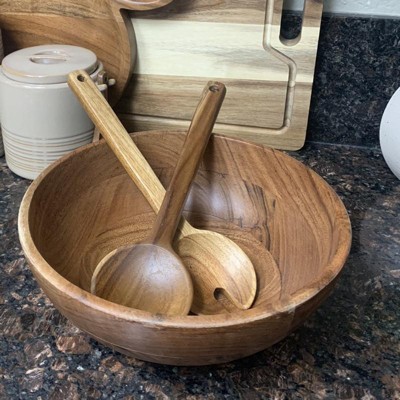 This 2-Pack Wood Salad Serving Spoon Set from Figmint™ makes serving and tossing salads a breeze. Made from beautiful acacia wood in a natural brown finish, these salad serving spoons feature ergonomic handles for easy, comfortable use. The spoons have hanging holes in the handles for a space-saving storage option, and they can be hand washed to clean.