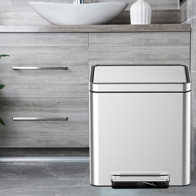 Dual Compartment Design: This trash can includes two separate compartments, allowing you to easily sort recyclables and waste in one convenient bin. This feature promotes eco-friendly habits and keeps your space organized.