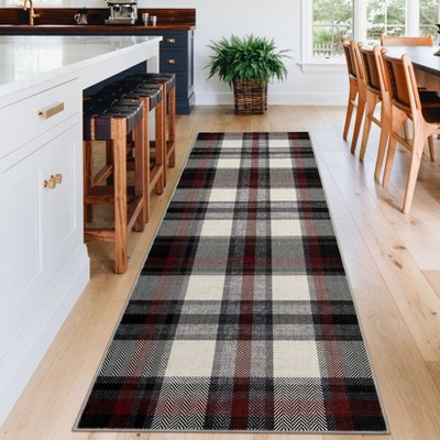 2x6 Geometric Machine Washable Runner Rug with Non-Slip Backing Narrow Plaid Stain-Resistant Indoor Carpet for Hallway Entryway Kitchen Laundry Room