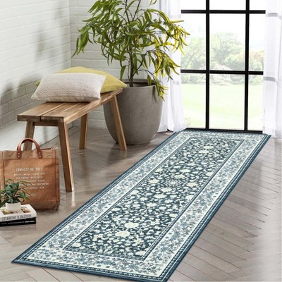 2x6 Large Washable Boho Vintage Area Rug Non-Slip Low Pile Machine Washable Carpet for Living Room, Bedroom, Office, Dining Room Kitchen Cyan-blue