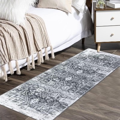 2x6 Modern Geometric Rug, Gray Thin Low-Pile Non-Slip Washable Indoor Carpet for Living Room, Bedroom, Kitchen & Entryway