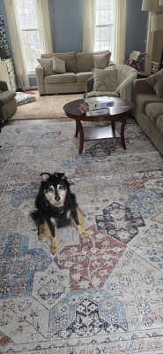This is a great washable rug. I have only had it for under a week so I can't speak to the long-term durability but it looks great. I was pleasantly surprised since it was so affordable for the size I got (10x13). We used interlocking foam tiles as a rug pad underneath to give the rug a more cushiony feel since it is very low pile. There is still and crease in the middle from being folded but I anticipate that will go away soon.