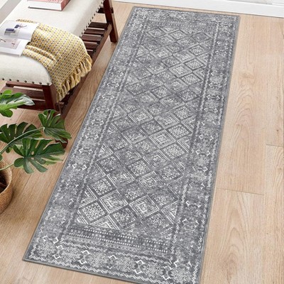 2x6 Washable Hallway Runner Rug Vintage Distressed Non-Slip Carpet Laundry, Kitchen, Boho Accent Rug for Living Room, Bedroom, Grey