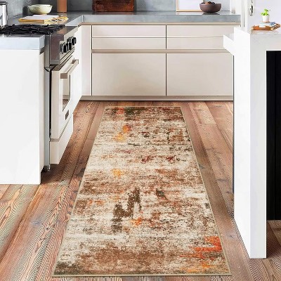 2x6FT Modern Washable Area Rug for Living Room, Bordered Print Floor Rug with Non Slip Backing, Low Pile Stain Resistant Carpet for Dorm, Taupe