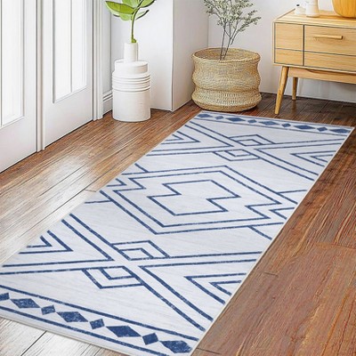 2x6FT Modern Washable Area Rug for Living Room, Bow-knot Printed Floor Rug with Non Slip Backing, Low Pile Stain Resistant Carpet, Blue