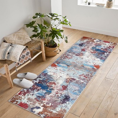 2x6FT Modern Washable Area Rug for Living Room, Floral Print Floor Rug with Non Slip Backing, Low Pile Stain Resistant Indoor Carpet for Dorm, Multi