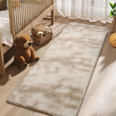 2x8 Plush Thick Shag Area Rug Large Soft Carpet, Non-Slip Non-Shedding Fuzzy Rug for Living Room, Bedroom Nursery Decor Tie dye Light brown