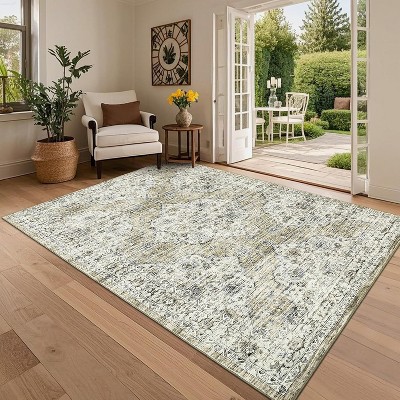 2x8 Vintage Washable Runner Rug - Stain-Resistant, Easy-Clean, Non-Slip, No-Shedding Low-Pile Carpet for Hallways, Light Brown