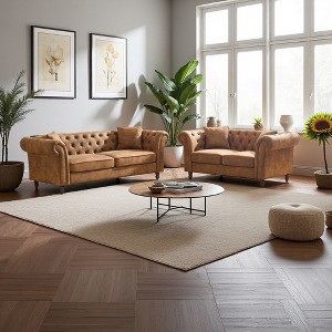 - Plush Comfort for Three: Sink into the soft, supportive cushioning of this 3-seater Chesterfield sofa, featuring high-density foam and spring padding that maintain its shape while providing cloud-like comfort.