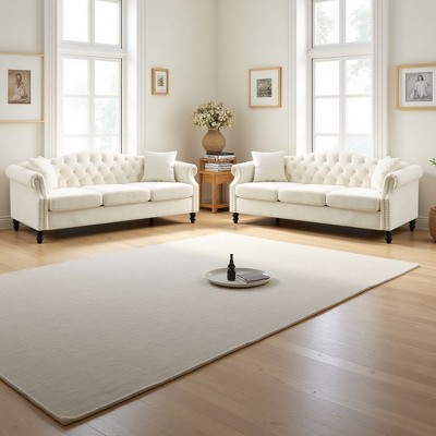 3+3 Seater Velvet Chesterfield Sofa Set with Nailhead Trim and Removable Cushions for Living Room