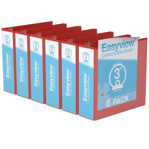 3" Premium Round Ring Binder 6pk Customizable View Red - Easyview: Polypropylene, 600 Sheet Capacity, 2 Pockets