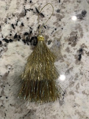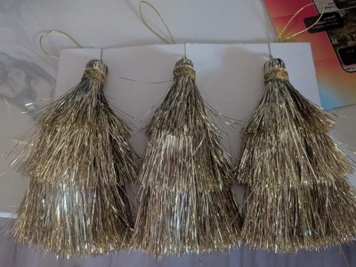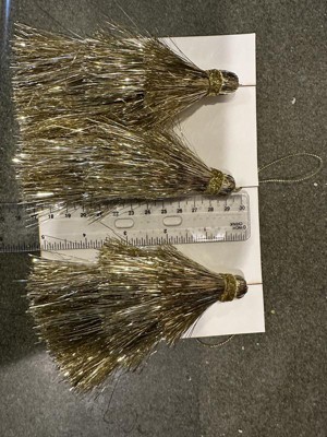 Add glam shimmer to your tree with this 5-Inch Mini Tassel Ornament Set from Wondershop™. Made from polyester and plastic, this set includes three mini tinsel tassels in a champagne color to add a burst of festive shine to your decor. Designed with built-in loops, you can easily hang them on your Christmas tree — hang them from the outer branches to reflect light, cluster them around any figurine ornament for added sparkle, or wind them around the tree topper for a swinging, cascading effect.