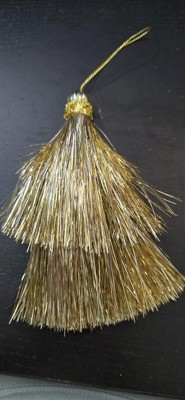 Packaged as 3 identical three tier tassels that are definitely gold although labeled as champagne colored. These are very lightweight so could be hung on virtually anything for decoration and likely not weigh it down.
