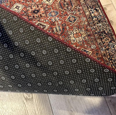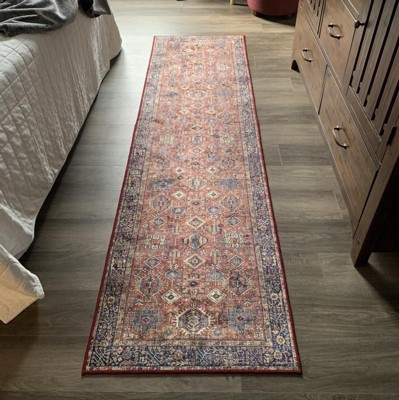 This is a beautiful rug and it’s very soft to the touch. However, the colors are a lot more vivid than I expected. The rust color is very orangey and the navy blue is very bright, too. It doesn’t really jive with my other decor. So, I gave them to my daughter and I’m searching for new rugs.