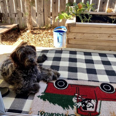Was looking for something for our main entrance that was bigger than a standard door mat and this was perfect. Wanted to be able to see the plaid design behind a doormat on top of it.