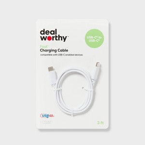 3' USB-C to USB-C Charging Cable - dealworthy™ White: Male-To-Male Connection