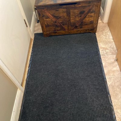 Apache Mills 3'X5' Stripe Almost Black Rug: Indoor Outdoor Low Pile Doormat, All-Weather Design, Vinyl Backing