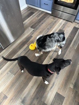 Dangerous toy, within 15 minutes my grand dog chewed it open and got out the large squeaker wrapped in a plastic bag! I'm grateful I was in the room when it happened.