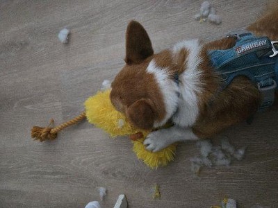 This is an adorable toy but within about half an hour, my ten-pound dog who is not aggressive with toys, detached the head from the body. I guess the positive is that he now has two toys instead of one. Unfortunately, once the pieces were no longer connected the squeaker and stuffing were accessible to the dog. I had to remove all the "guts" from the bird so that it was not a danger to the dog.