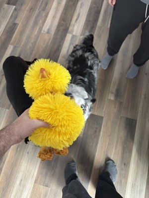 I honestly thought this was a chicken, but it’s supposed to be an emu. Either way, this adorable dog toy has kept my doggies busy since the moment I gave it to them. The rope legs are very durable - withstanding two putties during play time is no easy feat. The legs aren’t sewn in place, so they move as the dogs play tug-of-war. Instead of ripping the area where they would normally be sewn on. My doggies get super excited when squeeze the middle section and make it honk. I highly recommend this dog toy!