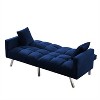 Morden convertible sofa bed. Whether you’re a busy professional in need of a perfect small space solution for your home, or cool and functional furniture for your dorm or first apartment,this sofa couch is your perfect choise. Our unique and functional sofa sleeper converts easily and quickly from a sofa to a lounger, to a full-size bed. Founded on a solid and manufactured wood frame with metal mechanisms & metal legs for durability and strength. Design with soft and comfortable velvet fabric to add comfy and speciosity. 【Comfortable Sofa Bed】 The sleeper couch is filled with thick foam with built-in springs to make your upholstered sofa comfortable and stretchy. The sofa cover is made of velvet fabric, which is soft to the touch. Give you the most comfortable experience. 【Upscale Material】This Futon sofa bed is covered with velvet,which is very soft and comfortable to touch,like baby skin. It's very easy to care and will not wrinkle or fade. Contemporary design for your office or living room. 【perfect Structure】The frame of this futon sofa bed is solid wood and manufactured wood. Weight capacity reaches 600 LBS. Perfect additional for your home and office.