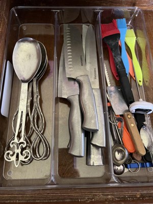 3 Compartment Plastic Drawer Flatware Organizer - Brightroom™: Clear In-Drawer Storage, Contemporary Style, 16"x13"