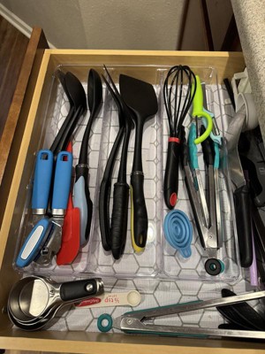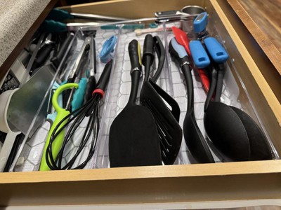 Organizing your kitchen utensils will be easy with the 3-Compartment Plastic Drawer Flatware Organizer from Brightroom™. Made of see-through plastic, this flatware organizer is designed with three compartments that are perfect for storing and separating your cooking utensils, kitchen tools and more. It's 2 inches high, 13 inches wide, and 16 inches deep, and can be conveniently stored inside a drawer for quick access.