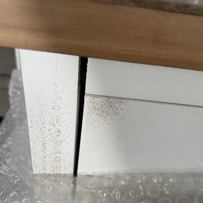 Damaged in many areas of this piece. Very cheaply made for such an expensive piece of furniture. Returning it.