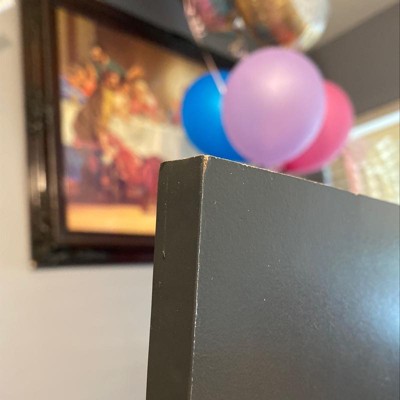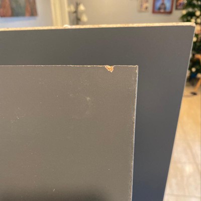 - Constructed from engineered wood in a dark gray finish