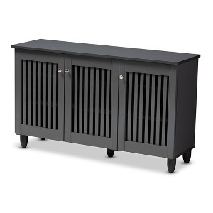 3 Door Fernanda Wooden Entryway Shoe Storage Wide Cabinet Gray - Baxton Studio: Holds 12 Pairs, MDF & Plastic Construction