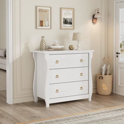3-Drawer Chest – Modern Boho Tall Dresser with Curved Legs, Rattan Detailing, and Versatile Storage for Bedroom, Living Room, Entryway, or Balcony