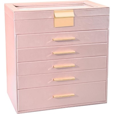 3-Drawer Jewelry Box with Glass Lid, Cloud White Organizer for Rings, Necklaces, Earrings, Interesting Gift Pink