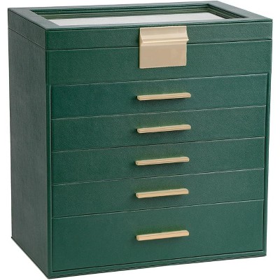- [Clear Display Window]Transparent lid showcases jewelry beautifully; 3-tier design with smooth-gliding drawers; Golden hardware accents add sophistication; Multiple compartments for easy visibility and access