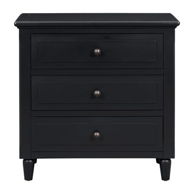 Embrace sophisticated organization and enhance your living space with this contemporary bedside cabinet designed with three smooth-gliding drawers on metal slides that offer ample storage for your daily essentials. Perfect for bedrooms or living rooms, this fully assembled nightstand provides a stable and stylish solution for organizing personal items with ease. Crafted from durable MDF for long-lasting use, it blends timeless design with practical functionality. Features include drawer storage and metal glides for easy access, making it an ideal choice for those seeking both elegance and convenience. Product dimensions: 28"W x 16.9"D x 28"H. Drawer dimensions: 22.3"W x 11.8"D x 6"H.