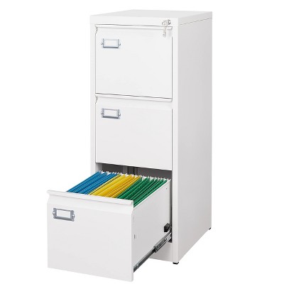 3 Drawer Metal Filing Cabinet, Vertical File Cabinets with Lock Home Office Metal File Organizer,White