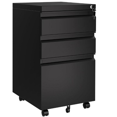 3-Drawer Mobile File Cabinet with Lock - Metal Lateral Filing Cabinet for Legal/Letter/A4 Files,Black