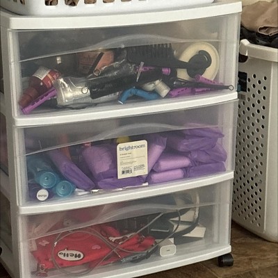 3 Drawer Wide Cart White - Brightroom™: Plastic Storage Drawers, Utility Cart with Casters, Portable Universal Storage