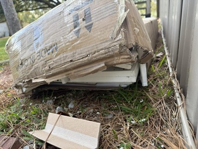 This was put together with a nail gun then taken apart and shipped to me. It’s completely damaged and I’m super upset.