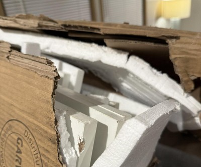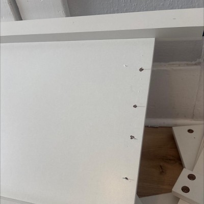Several boards were chipped and a whole bag of the screws we needed were missing
