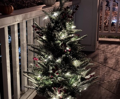 This 3ft tabletop Christmas tree features 78 pre-installed LED lights that provide a warm, festive glow. Simply unfold the branches and add batteries (not included) for a cozy atmosphere.